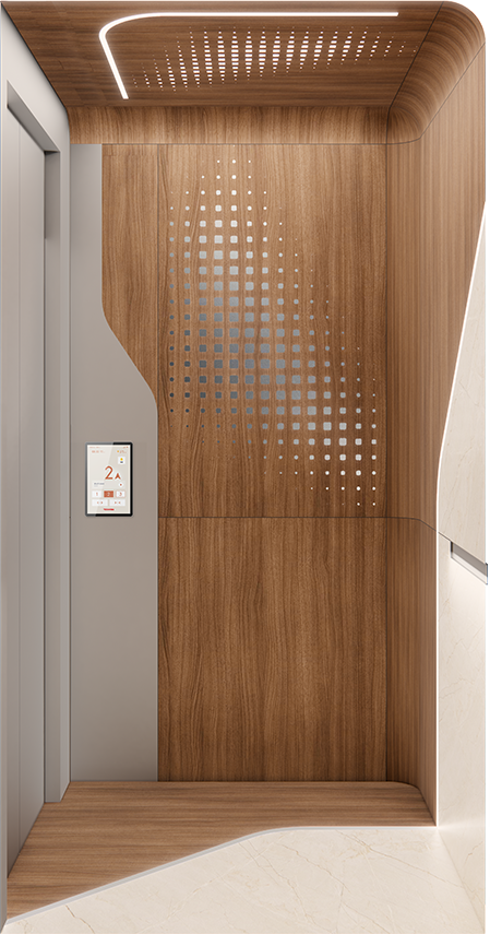 多款轎廂裝潢,以材質(zhì)、光影、線(xiàn)條的精妙融合