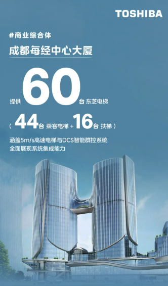 面對超高層建筑的垂直通行挑戰,東芝電梯以5m/s的提升速度,從容應對雙塔辦公與商業空間的高頻率流,讓效率與高度同步。支撐這份“速度感”的,是東芝引以為傲的New ELBRIGHT系列高速電梯。