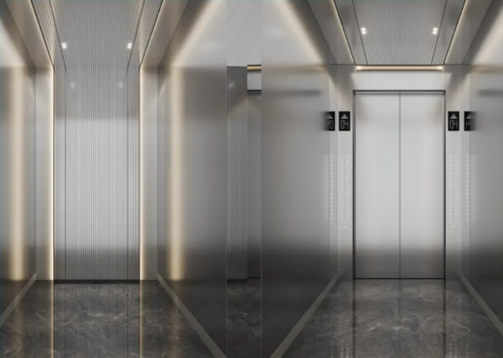 定制化轎廂裝潢,選用抗指紋半鏡面不銹鋼,提升視覺質感與空間延伸感;無障礙電梯的配置,則彰顯人文關懷與國際化標準。