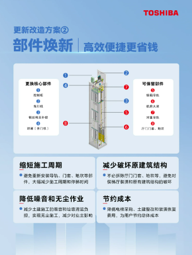 方案二:部件煥新。適合電梯結構件保養(yǎng)良好,有效控制成本和施工影響,高效便捷更省錢。